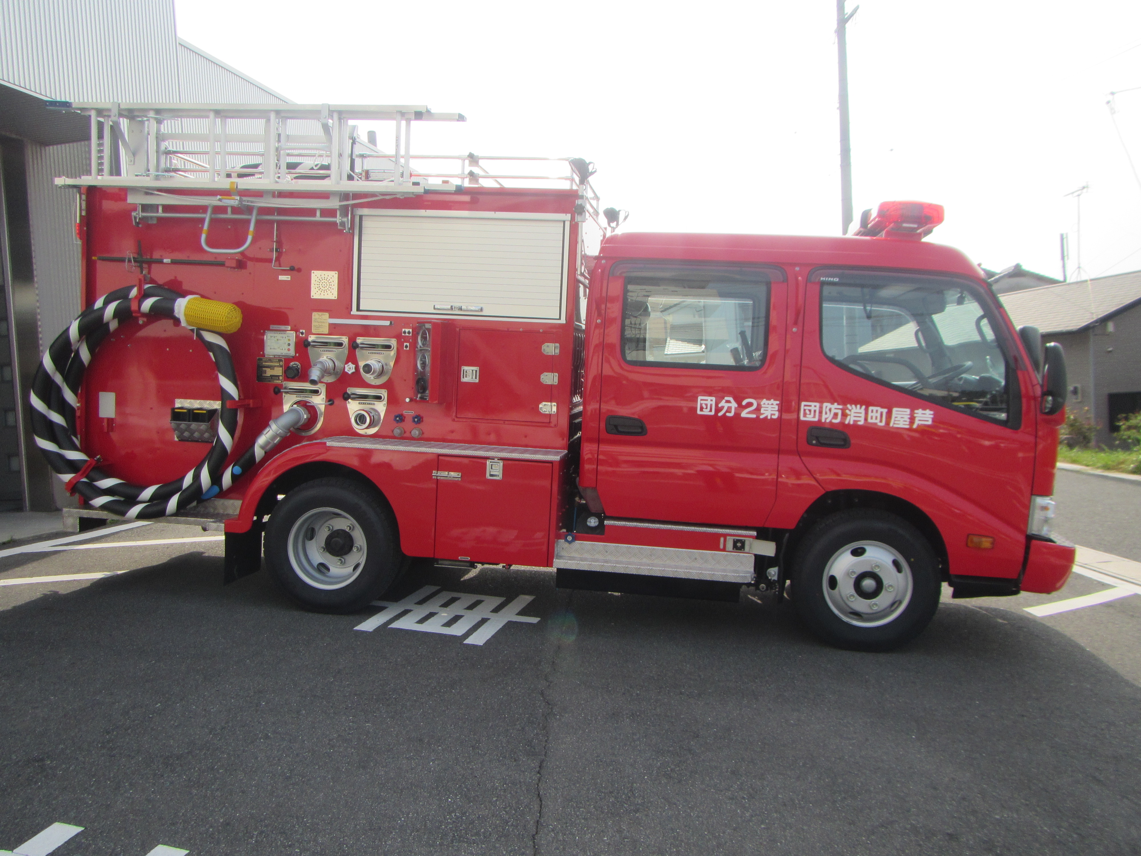 この新しい消防ポンプ自動車は、防衛省の平成30年度特定防衛施設周辺整備調整交付金事業により更新配備したもので、最新の消防ポンプやチェンソーなど多くの資機材を搭載しており、これまで以上に迅速な初期消火や災害対応が可能になりました。
