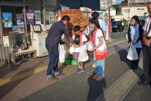令和6年10月1日、福岡県共同募金会芦屋町支会(芦屋町社会福祉協議会)主催の「赤い羽根共同募金」で、ボランティアを行いました。